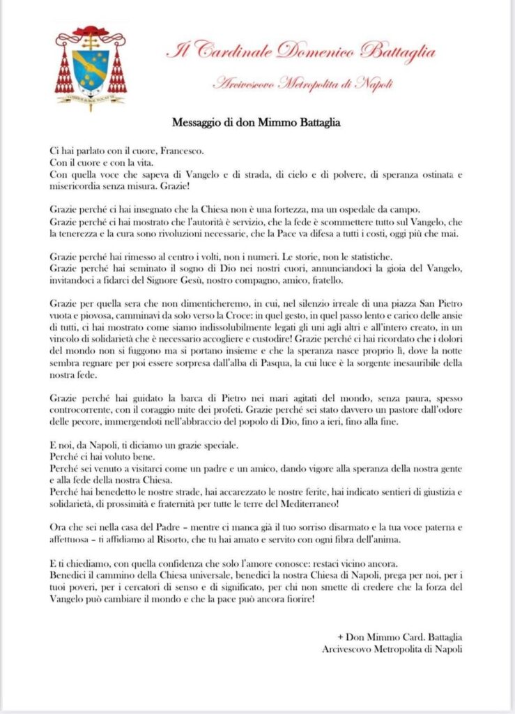 Notizie Papa FrancescoMessaggio del Cardinale Mimmo Battagliaaggiornato il23 Aprile 202523 Aprile 2025