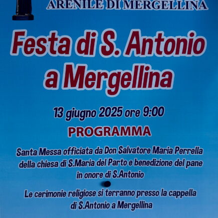 13 giugno 2025 – ore 9:00 Arenile di Mergellina – Cappella di S. Antonio L’Associazione Cattolica S. Antonio dei Marinai è lieta di invitare soci, devoti e tutta la cittadinanza alla tradizionale Festa di S. Antonio, che si terrà il giorno venerdì 13 giugno 2025 alle ore 9:00 presso la Cappella dedicata al Santo, situata sull’arenile di Mergellina. Il …