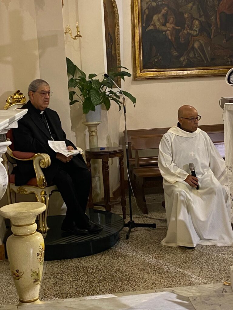 Il cardinale Crescenzio Sepe nello studio di padre Salvatore M. Perrella, parroco di Santa Maria del Parto, Napoli 30/8/2025.